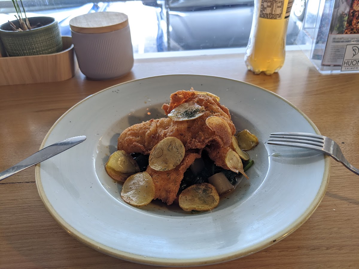 We bought the battered fish and chips and were happy at the serve size. Fish was tasty and chips were well seasoned although they were fries rather than the traditional chips you'd usually see at a takeaway. The fish and chips also came with aioli and a wedge of lemon. The shop is quite nice with pleasant staff and they also sell fresh fish too. A nice addition to Franklin shops!