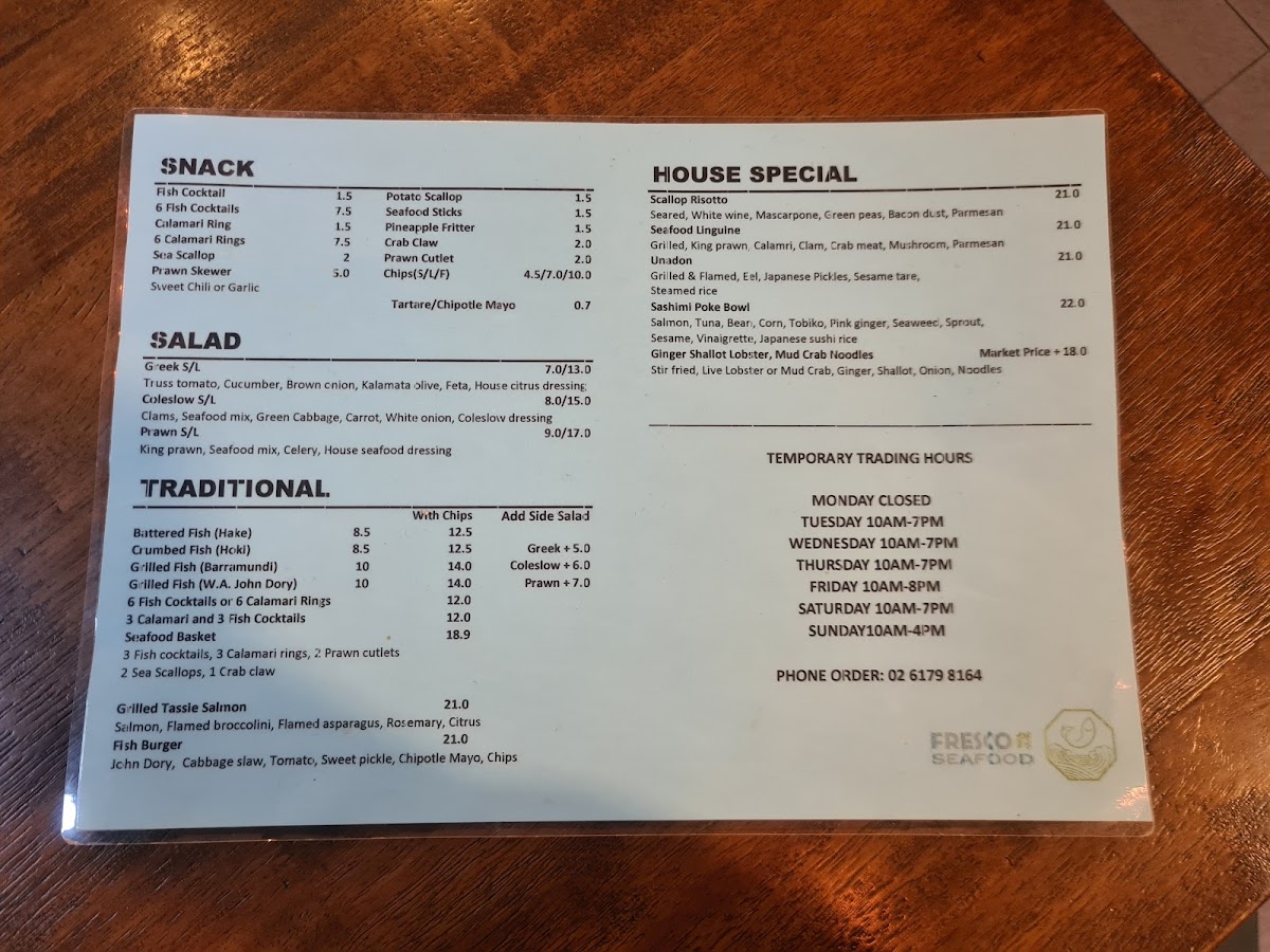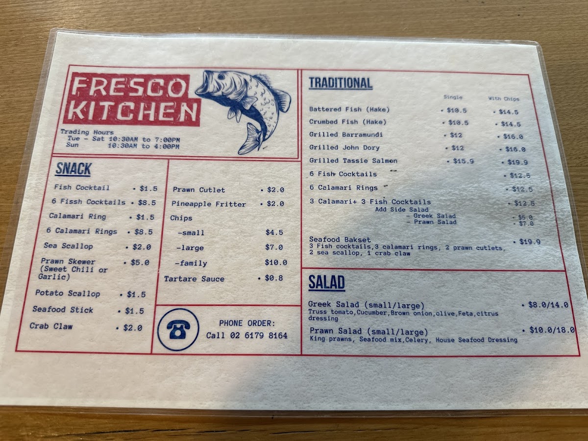 Fresco Seafood offers a straightforward menu that blends casual takeout favorites with fresh market finds. The focus is on simple, satisfying seafood dishes alongside lighter café-style options, making it easy to enjoy whatever catches your mood or appetite.