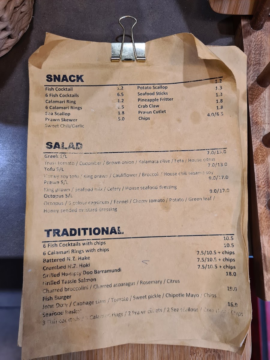 Typical menu highlights include fresh fish and chips, classic fish cocktails with chips, and salads featuring prawns or tofu. Alongside these, you'll find a variety of fresh seafood selections that suit those looking to take home ingredients for their own cooking. Fresh juices complement the menu, providing a refreshing balance to the rich, crisp flavors of the seafood.